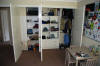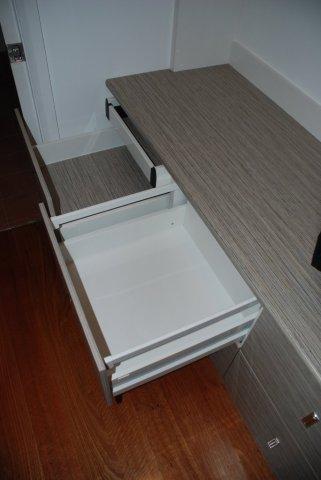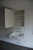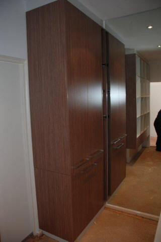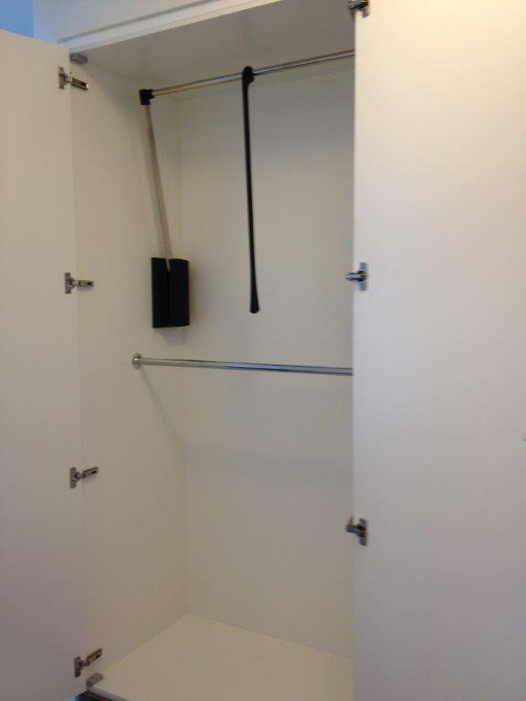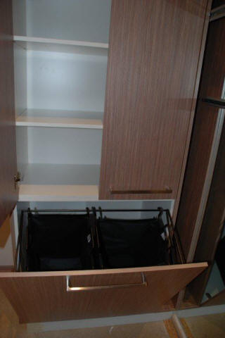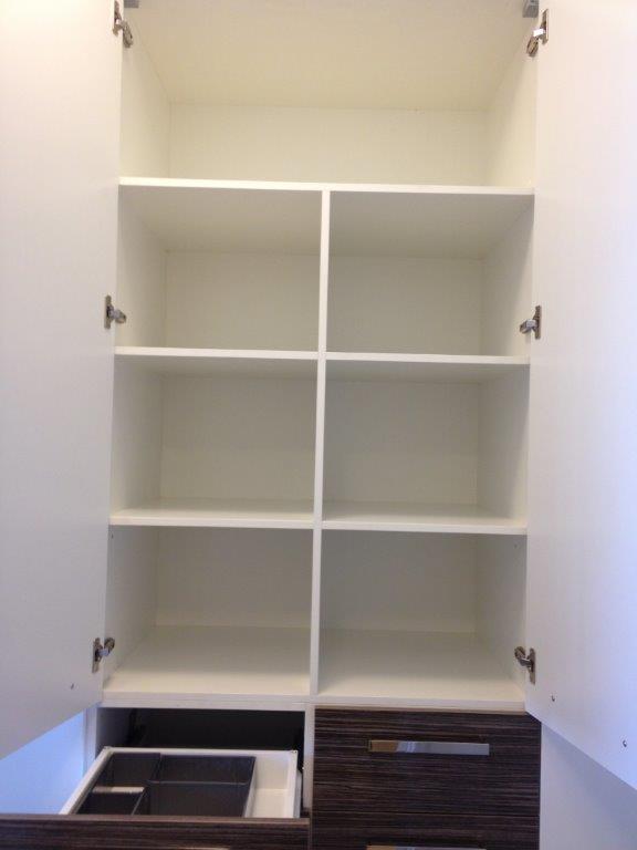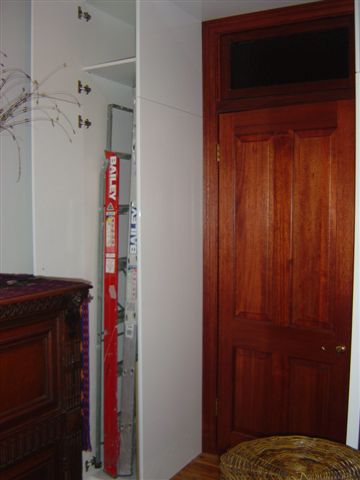 A custom built tall cupboard to house the ladder, extra storage all the way to the ceiling