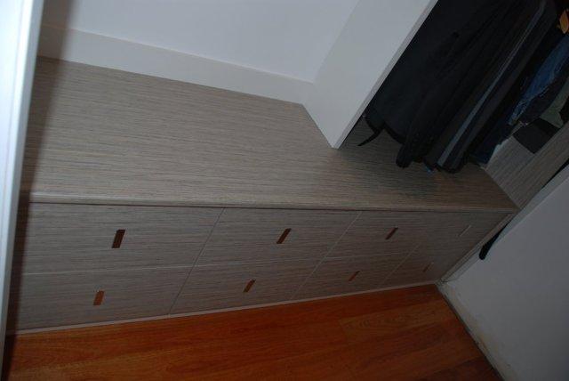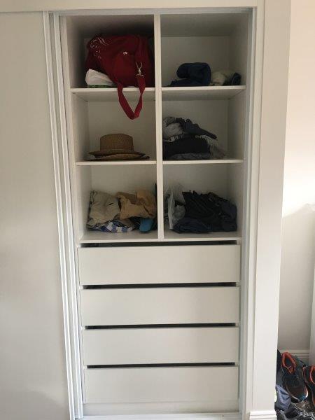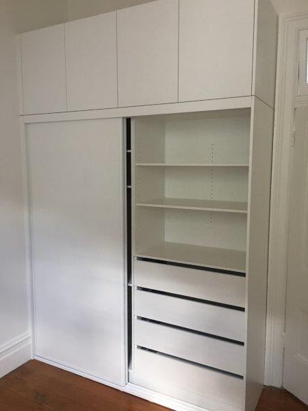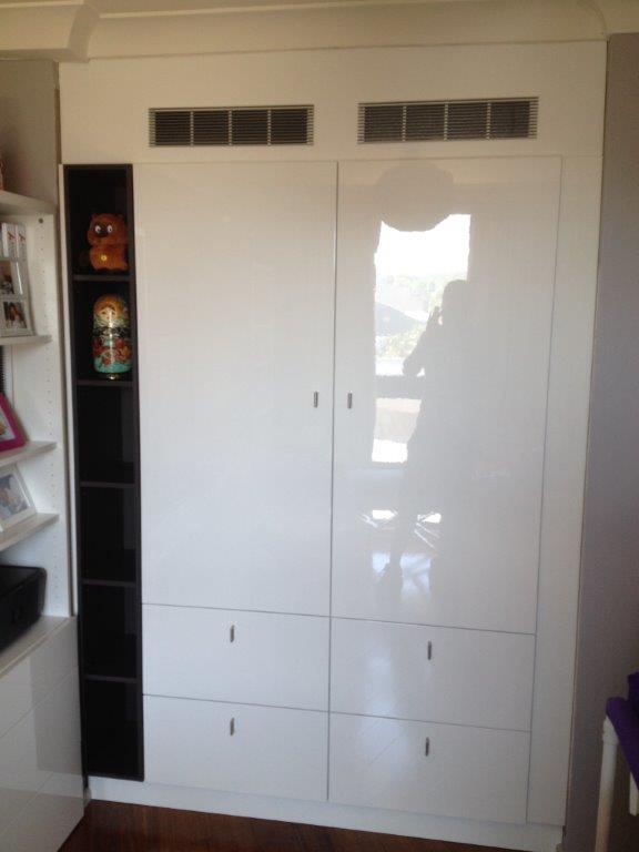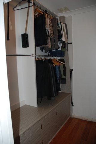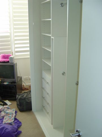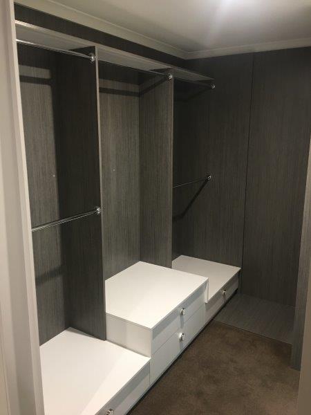 This wardrobe is only 450mm deep to meet existing cabinetry, a standard wardrobe would have been 600mm deep